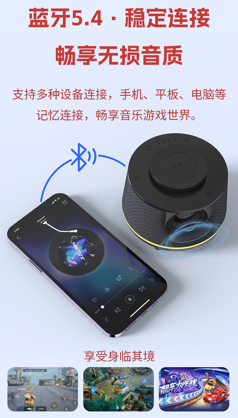 白噪音蓝牙音箱结合了白噪音的舒缓特性和蓝牙连接的便捷性。白噪音是一种均匀的、无明显频率特征的声音,它能够掩盖周围环境中的其他噪音,帮助人们集中注意力、缓解焦虑、促进睡眠。而蓝牙功能则让音箱可以与各种智能设备无线连接,使用起来更加灵活方便。